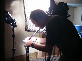 An endoscopic shot of a flea, in a collar, ready to kick a ball on a tiny football field. (And boy did he!!!) |